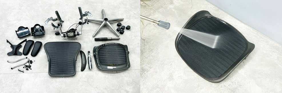 アーロンチェアは頑丈で長持ちしますが長年使用しているとどうしてもあて傷や金属部のクスミ等が出てきてしまいます。